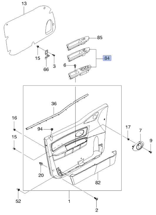 ALL NEW MATIZ 2008³â~2011³â½Ä ÇÁ·±Æ® 2´Ü À©µµ¿ì ½ºÀ§Ä¡ µµ¸éÀÇ 84¹ø "¿îÀü¼®¿ë" ºÎǰ ÀÔ´Ï´Ù.